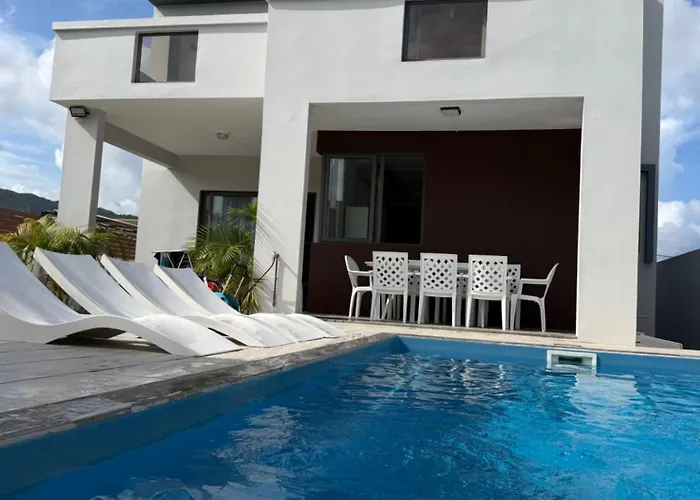 De 2-slaapkamer Casa Blue Print Mahebourg Villa heeft een zwembad voor de ontspanning van de gasten en ligt op 4 km van Riche-en-Eau. De villa biedt autoverhuur en nodigt gasten uit om het Morcellement Beau Vallon te bezoeken, dat op 25 minuten wandelen ligt.